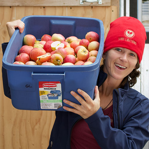 Don’t let the apples sit around any longer than a week or they’ll start to go soft and the pressing will be more difficult (or impossible). Keep them as cool as you can. Bring them in in stages if necessary. We have a walk-in cooler that we can put them in.